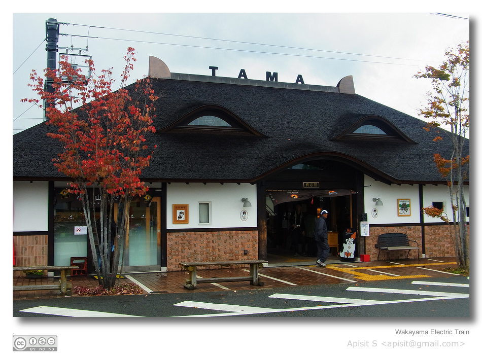 จากสถานี Wakayama ก็มีรถไฟเอกชนสาย Wakayama ไปยัง Kishi ที่มีแมว Tama เป็นนายสถานี เป็นทางรถไฟสายสั้นๆ มีขายบัตรเหมา 1 วัน 650 yen ตัวรถไฟมีอยู่สามลาย คือลาย Strawberry ลายของเล่น และลายแมว tama ช่วงที่ไปรถไฟลาย tama กำลังซ่อม เลยเห็นแค่สองขบวน